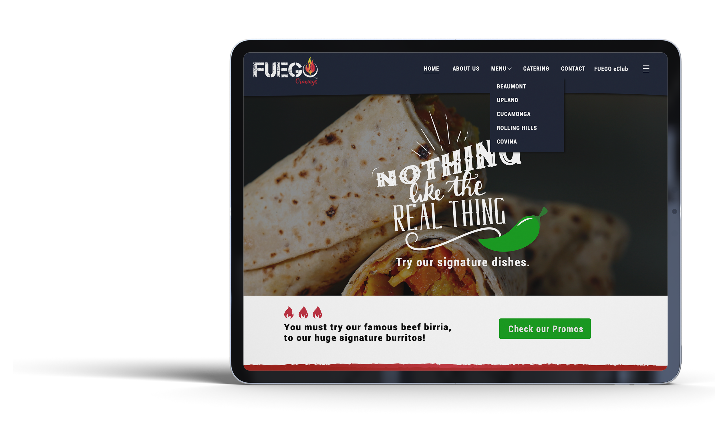 Web design and UX for Fuego, Birria Restaurant