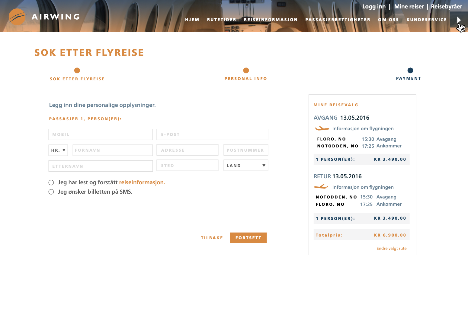 Web and UX design for Airwing. a Norwegian regional airline.